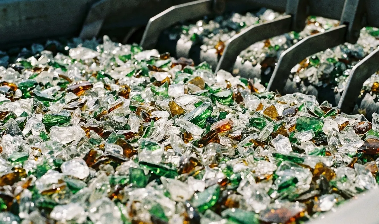 You rarely see whole bottles inside a recycling plant. The majority arrives already broken. Plants treat this as usual. Broken glass being sorted runs across vibrating decks, separating it by size. Smaller fragments fall through first while larger ones move forward.