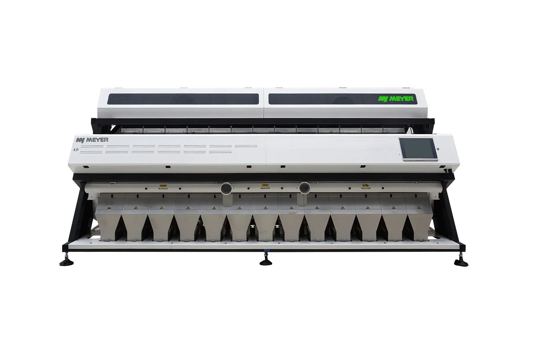 The MEYER CS Food Series sorter is a versatile device with applications across multiple processing industries. It excels at sorting a wide variety of materials, including grains, legumes, nuts, and seeds. The machine offers a broad range of configuration options, allowing its functionality to be precisely tailored to the specific needs of each production facility. The sorter effectively removes moldy, discolored, insect-damaged, broken grains, as well as foreign objects. It also enables classification of materials based on length, size, and shape. Thanks to AI Deep Learning systems and advanced detection and selection technologies, the MEYER CS Food Series can handle complex impurities and defects that pose challenges for traditional sorting methods.